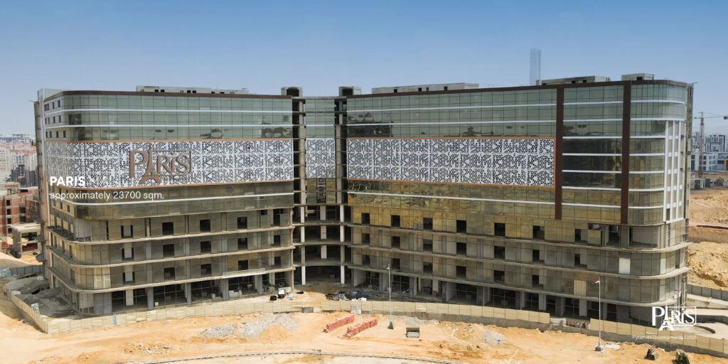 - بيراميدز ايست مول Paris East Mall … أمام بيراميدز مول مباشرة … على مساحة 28 ألف متر مربع … يتكون من طابق أرضي +11 طابق علوي.